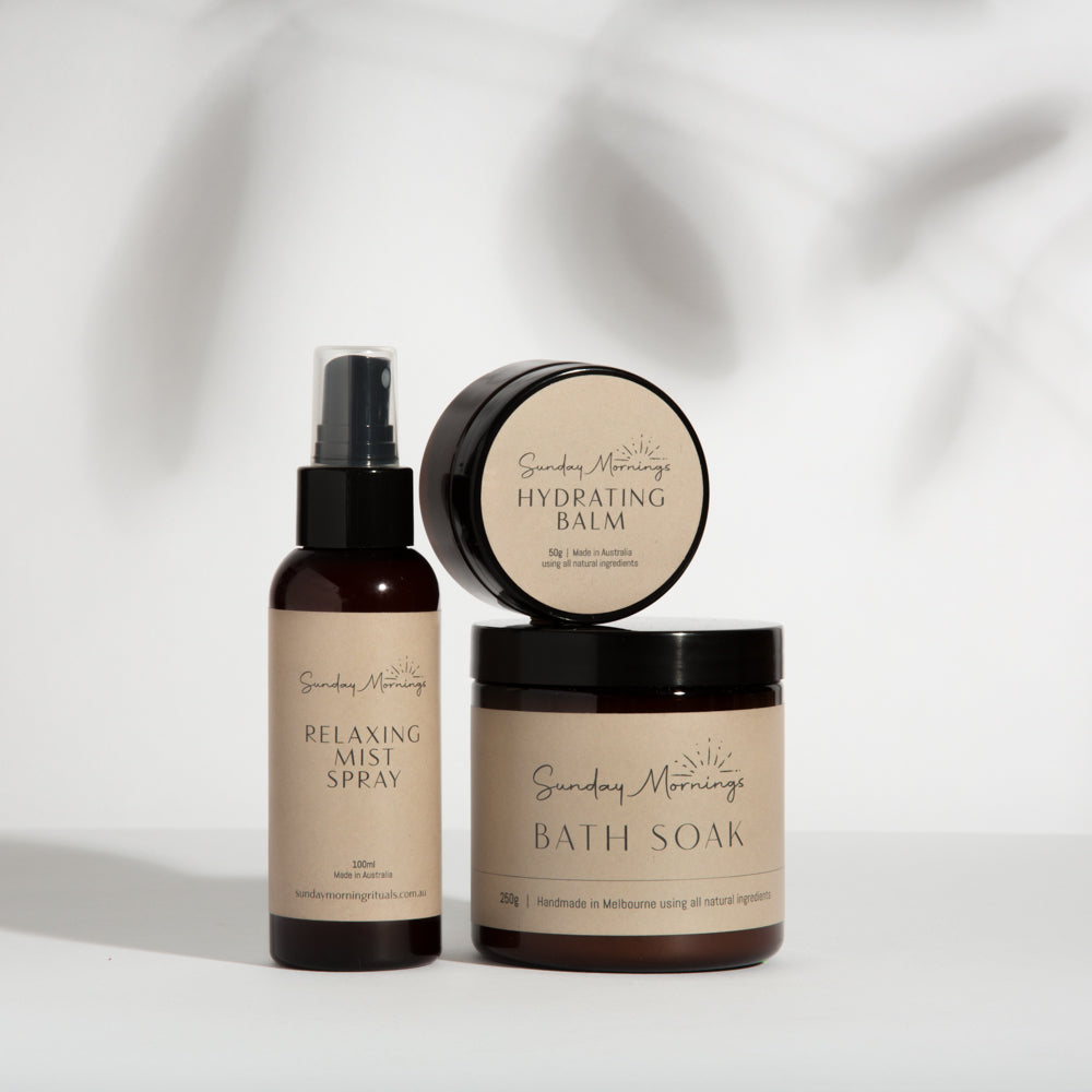 Indulge in the ultimate self-care ritual with our thoughtfully curated gift pack. Featuring a luxurious bath soak to relax and rejuvenate, a refreshing mist spray to hydrate and uplift, and a rich hydrating balm to deeply nourish and soften your skin, this trio is designed to transform everyday moments into pure bliss. Made with plant-based, natural ingredients, it's the perfect way to unwind, recharge, and treat yourself or someone special to a little extra care and love. Whether it’s a gift or a personal indulgence, this set is your invitation to relax, rejuvenate, and glow.