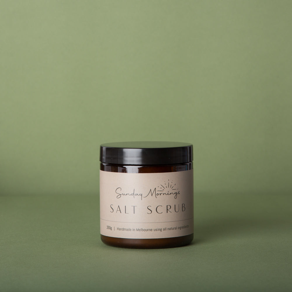 Start your day with a refreshing glow using our Sunday Morning Rituals Salt Scrub, designed to invigorate your skin and leave it feeling silky smooth.