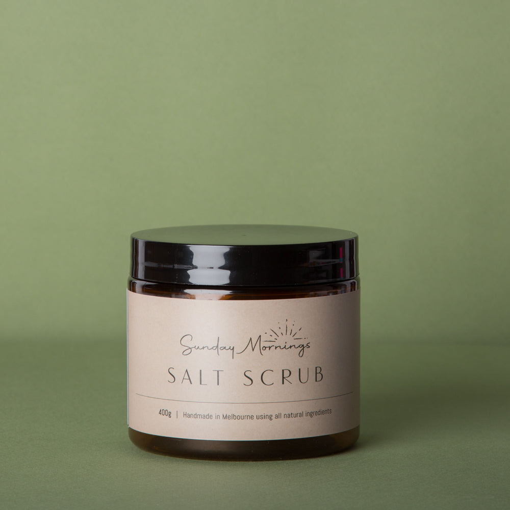 Start your day with a refreshing glow using our Sunday Morning Rituals Salt Scrub, designed to invigorate your skin and leave it feeling silky smooth.